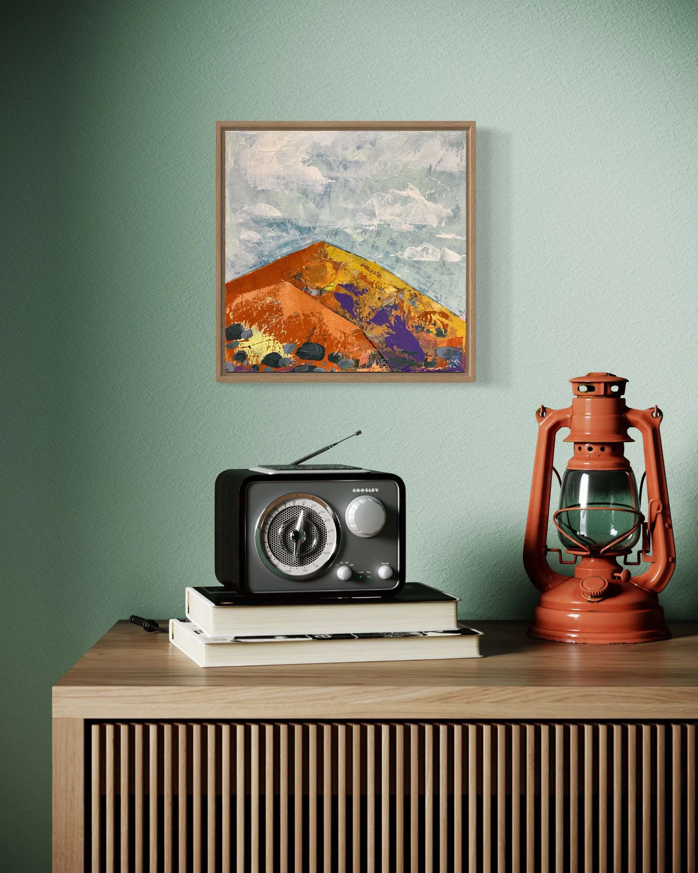 “Autumnal” 12x12” acrylic on canvas, in a setting.